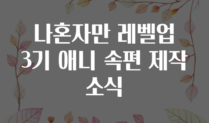 "๋ํผ์๋ง ๋ ๋ฒจ์ " (Solo Leveling)์ ์์ ์นํฐ๊ณผ ์์ค ๋ชจ๋ ๊ตญ๋ด์ธ์์ ์์ฒญ๋ ์ธ๊ธฐ๋ฅผ ๋์๋ ๋งํผ, ์ ๋๋ฉ์ด์ 3๊ธฐ ์ ์ ์์์ ๋ง์ ํฌ๋ค์๊ฒ ์ค๋ ๊ณผ ๊ธฐ๋๋ฅผ ๋ถ๋ฌ์ผ์ผํค๊ณ ์์ด์! ๐ ๊ทธ๋ผ ์ด๋ฒ ์ฝํ ์ธ ์์๋ ๋ํผ์๋ง ๋ ๋ฒจ์ 3๊ธฐ ์ ๋๋ฉ์ด์ ์ด ๊ฐ์ง๋ ์๋ฏธ, ๊ธฐ๋ ํฌ์ธํธ์ ํจ๊ป ์ํธ์ ๊ธฐ๋ค๋ฆฌ๋ ๋์ ๋์น์ง ๋ง์์ผ ํ ํต์ฌ ์ฌํญ๋ค์ ๊ผผ๊ผผํ๊ฒ ์ง์ด๋ณด๋๋ก ํ ๊ฒ์.