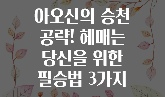 ์์ค์ ์ ์น์ฒ ๊ณต๋ต! ํค๋งค๋ ๋น์ ์ ์ํ ํ์น๋ฒ 3๊ฐ์ง ๐๐