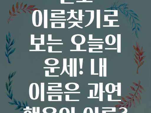 - ๐ ์ด๋ฆ๊ณผ ๊ด๋ จํ ๊ฐ์ธ ๋ง์ถค ์ด์ธ ์ฑ ํ์ฉํ๊ธฐ (์: ํ ์ ๋น๊ฒฐ ๊ณต์ ์ฌ์ดํธ)